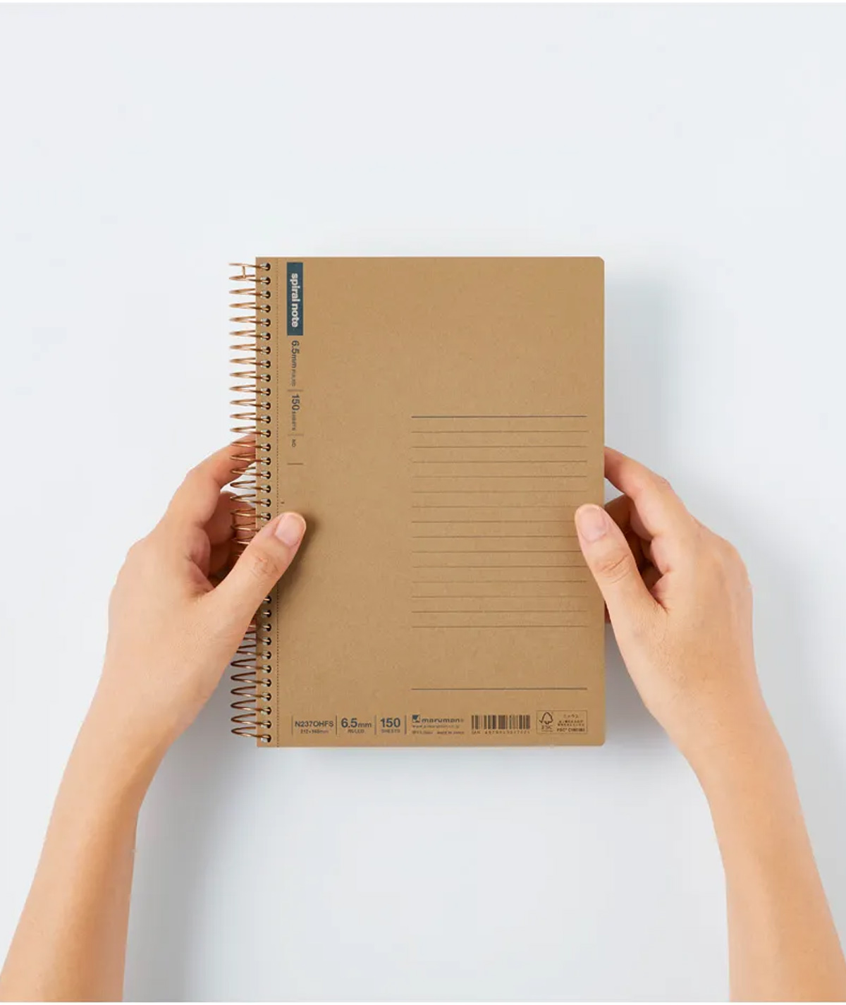 Maruman’s Spiral Note BASIC A5 is a durable, lay-flat notebook with 40 micro-perforated, acid-free pages for a smooth writing experience. Its sturdy kraft cover offers support, making it perfect for work, study, or daily planning. Made in Japan.